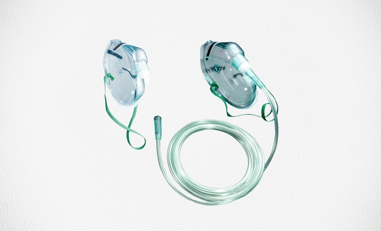Máscaras para administração de oxigênio com diferentes fluxos.