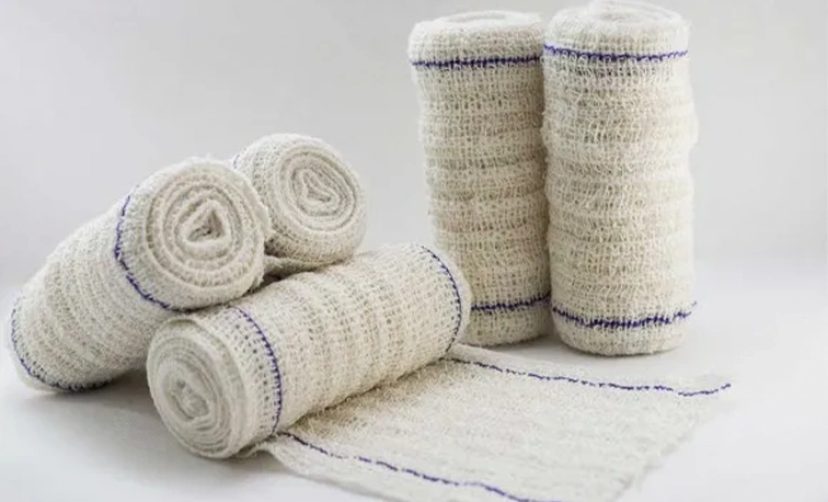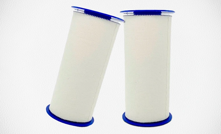 Ataduras elásticas e adesivas para fixação e compressão terapêutica.